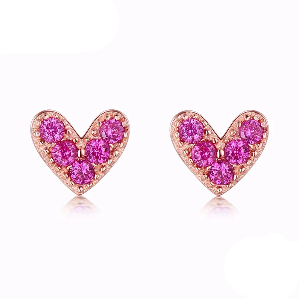 Genuine 925 Sterling Silver Heart Pink Stud Earrings
