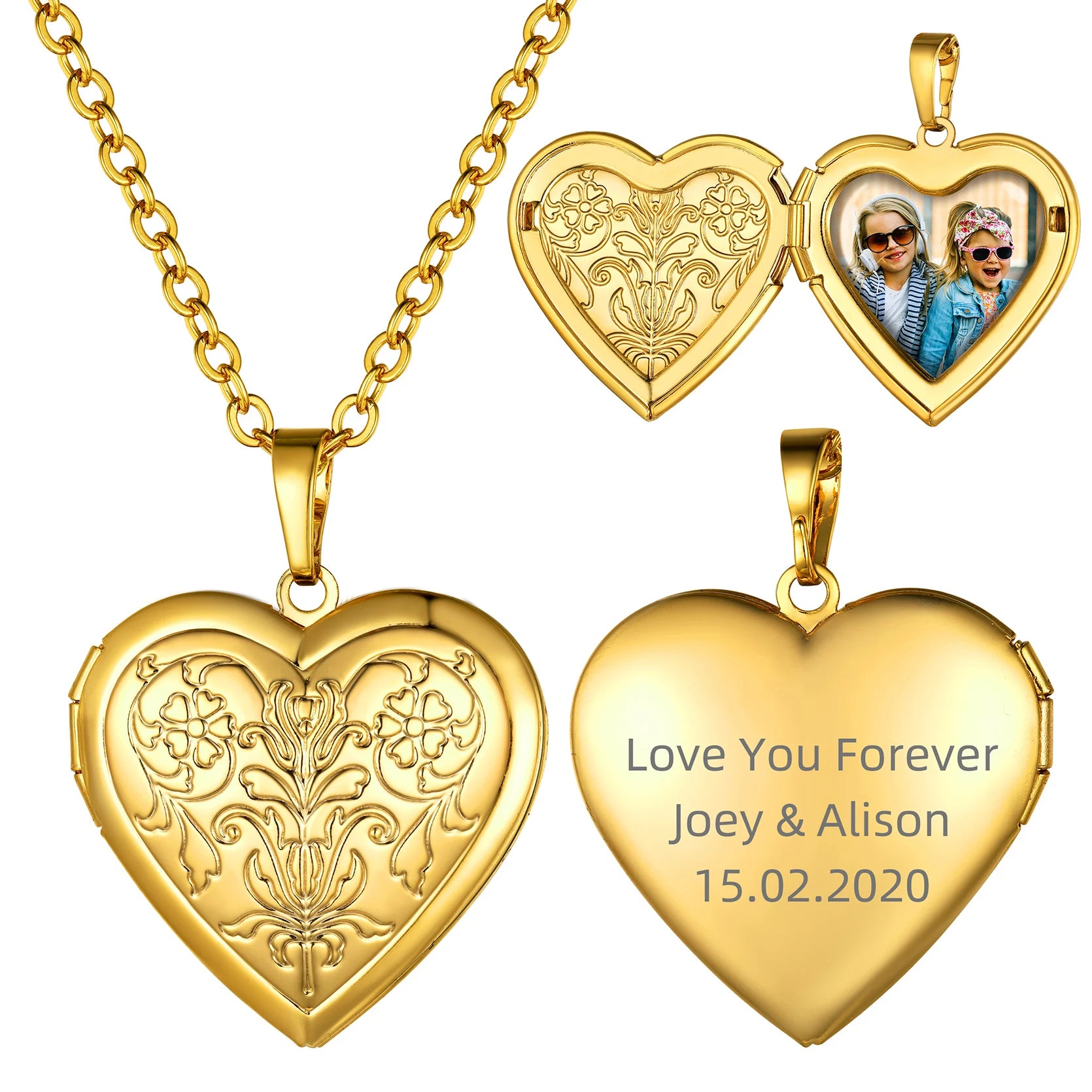 The Heart Frame Memory Locket Pendant Necklace combines timeless design with personalized sentiment. Crafted from environmentally friendly brass and stainless steel, this unisex pendant features a 2.5mm rolo link chain measuring 50cm with an additional 5cm extender for adjustable comfort. The nickel-free metal ensures safe wear for sensitive skin. This customizable necklace allows you to upload a cherished photo, making it an ideal gift for family, friends, or loved ones on occasions like anniversaries, engagements, or daily wear. Its heart-shaped pendant offers a trendy yet meaningful accessory that preserves your precious memories close to the heart.