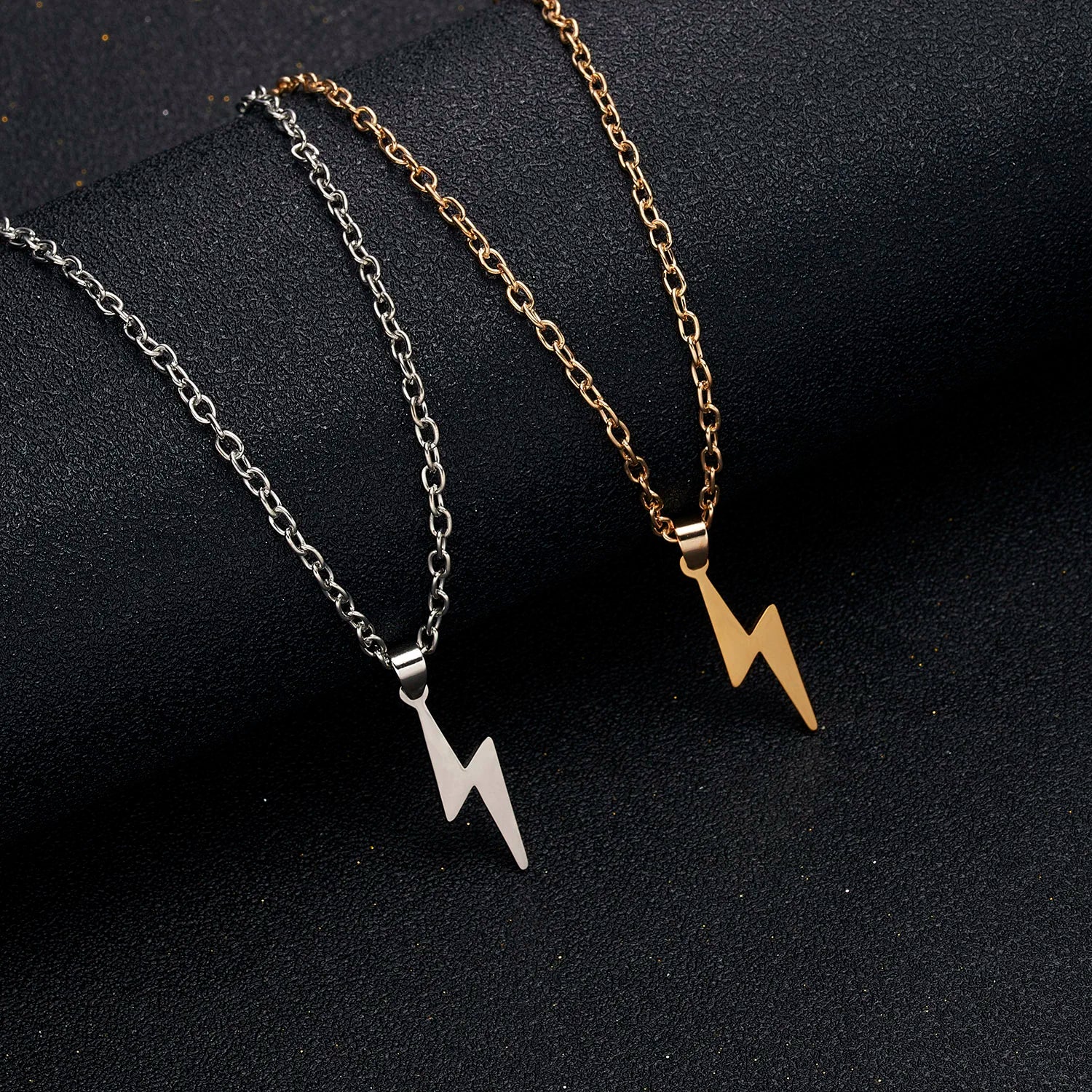The Long Chain Small Lightning Pendant Necklace by rinhoo combines trendy design with durable craftsmanship. Made from high-quality stainless steel, this link chain necklace features a sleek lightning bolt pendant that suits both men and women. Its versatile style complements daily wear and party outfits alike, offering a fashionable accessory that is compatible with all styles. Free from harmful chemicals, this necklace ensures comfort and safety while enhancing your look with a modern edge. Ideal for those seeking a subtle yet striking statement piece.